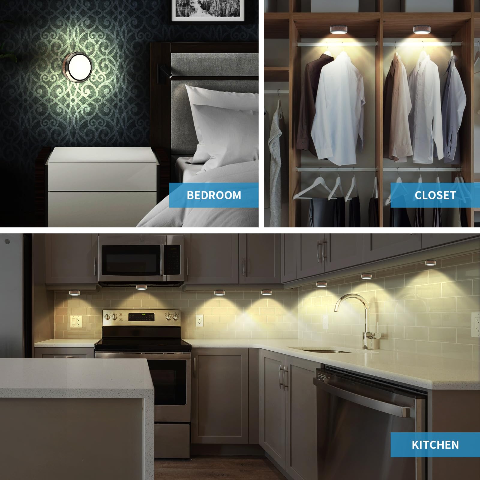 - **Klart og Naturlig Lys**: Med 7 høykvalitets LED-perler gir disse lysene med en diameter på 3,12 tommer dobbelt så mye naturlig lys sammenlignet med vanlige puck-lamper. Det 4000K naturlige hvite lyset skaper en innbydende atmosfære i kjøkkenet, i skapet, eller hvor som helst du trenger ekstra belysning.