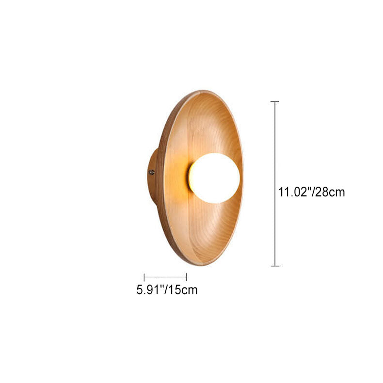 Norvo | Modern Minimalist Rund Skive Solid Tre 1-Lykt Vegglampe
