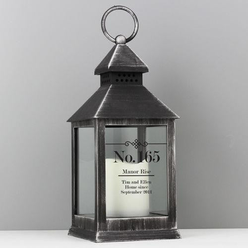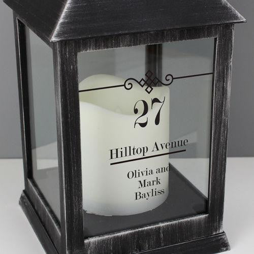This stunning black lantern is a brilliant way to add a touch of colour to any home. It can be personalised with up to 5 lines of text. The first line is displayed in a larger font, allowing for a maximum of 10 characters. Lines 2 to 5 can each hold up to 20 characters. The battery-operated LED lantern produces a vibrant warm orange flame effect with flickering lights, creating a cosy atmosphere in any room. It comes with a hook for easy indoor hanging and can be easily switched on and off with a button located on the bottom. This makes it an ideal gift for your home.