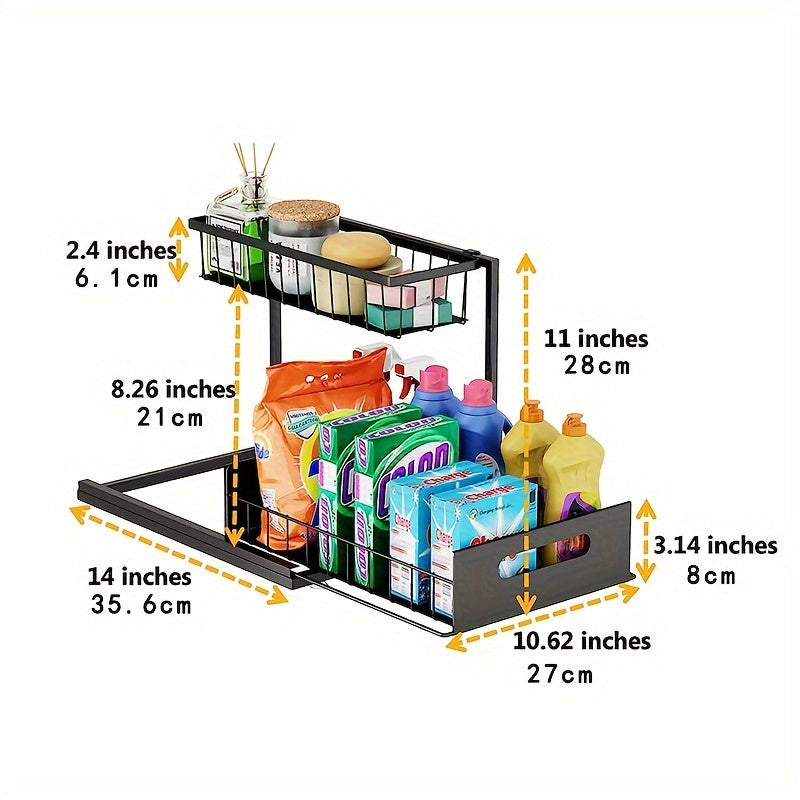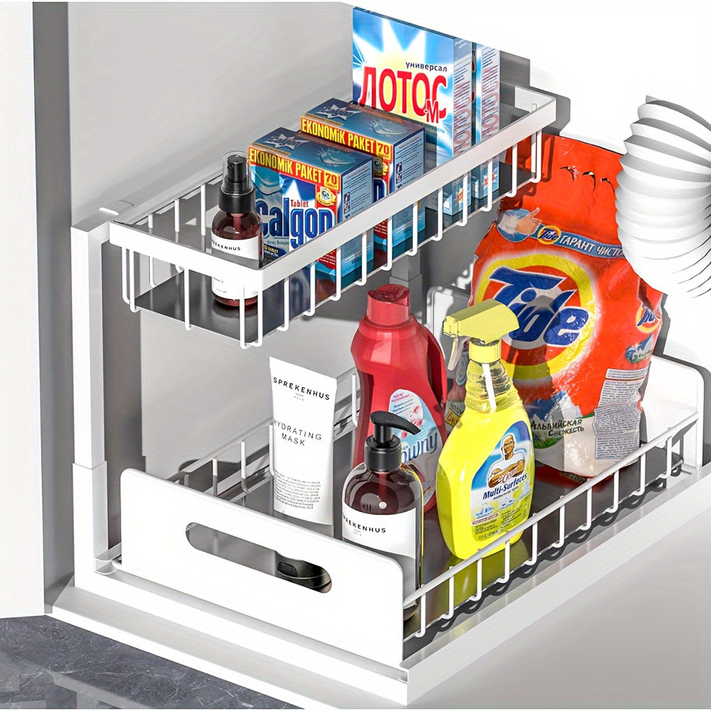 Forvandle det rotete området under vasken din med Under vasken Organizer fra GROWSUN til en modell av effektivitet. Denne allsidige 2-nivå lagringsløsningen er designet for å utnytte plassen optimalt og forbedre kjøkkenet eller badet ditt, samtidig som den tilbyr stil og funksjonalitet.
