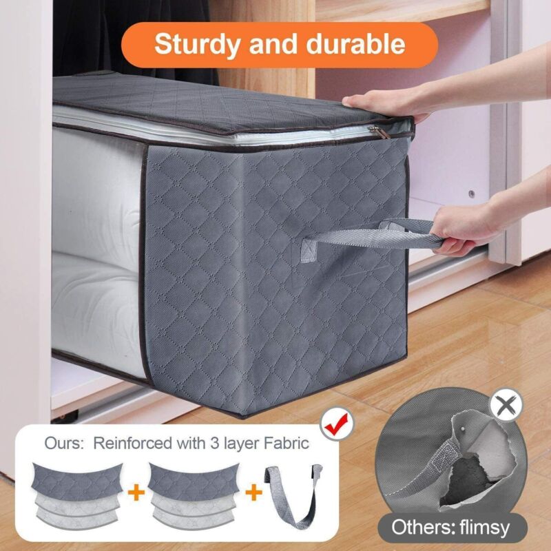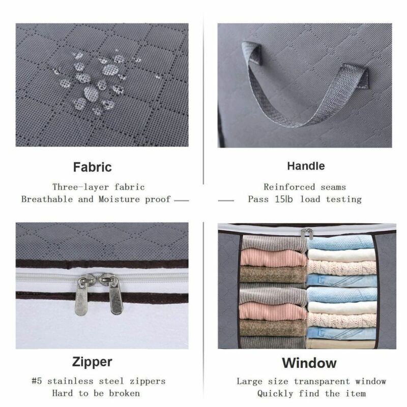 Robust & Holdbar: Håndtakene er utformet for å tåle vekten av klær eller tepper, selv når posen er helt fylt. Utrustet med dobbel glidelås i rustfritt stål som glir lett langs lukningen, noe som gjør den enkel å bruke uansett hvor mye som er inni.
