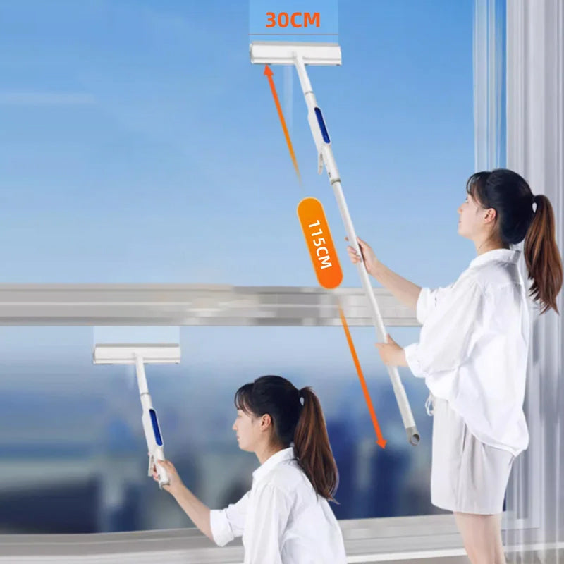 Allsidig bruk --- I tillegg til vinduer er den dobbelsidige sprayforlengningsvaskeren tilpassbar og kan også brukes på speil, glassdører, dusjvegger og mange andre glassflater. Dens design gir en stripefri, skinnende finish på ulike områder i hjemmet ditt.