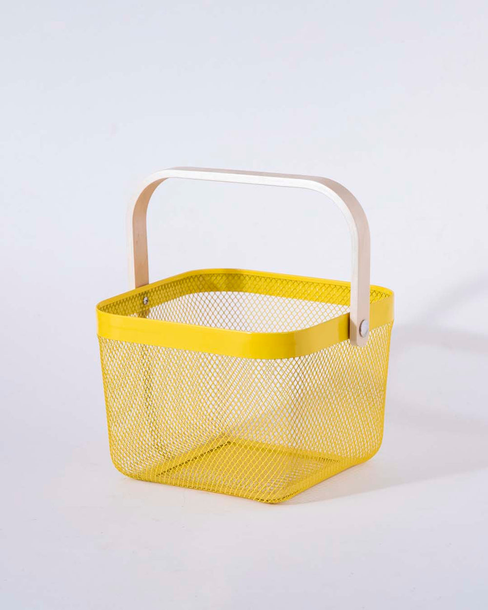 Norvo | Firkantet Metalloppbevaringskurv med Trehåndtak - Gul - Sett med 2