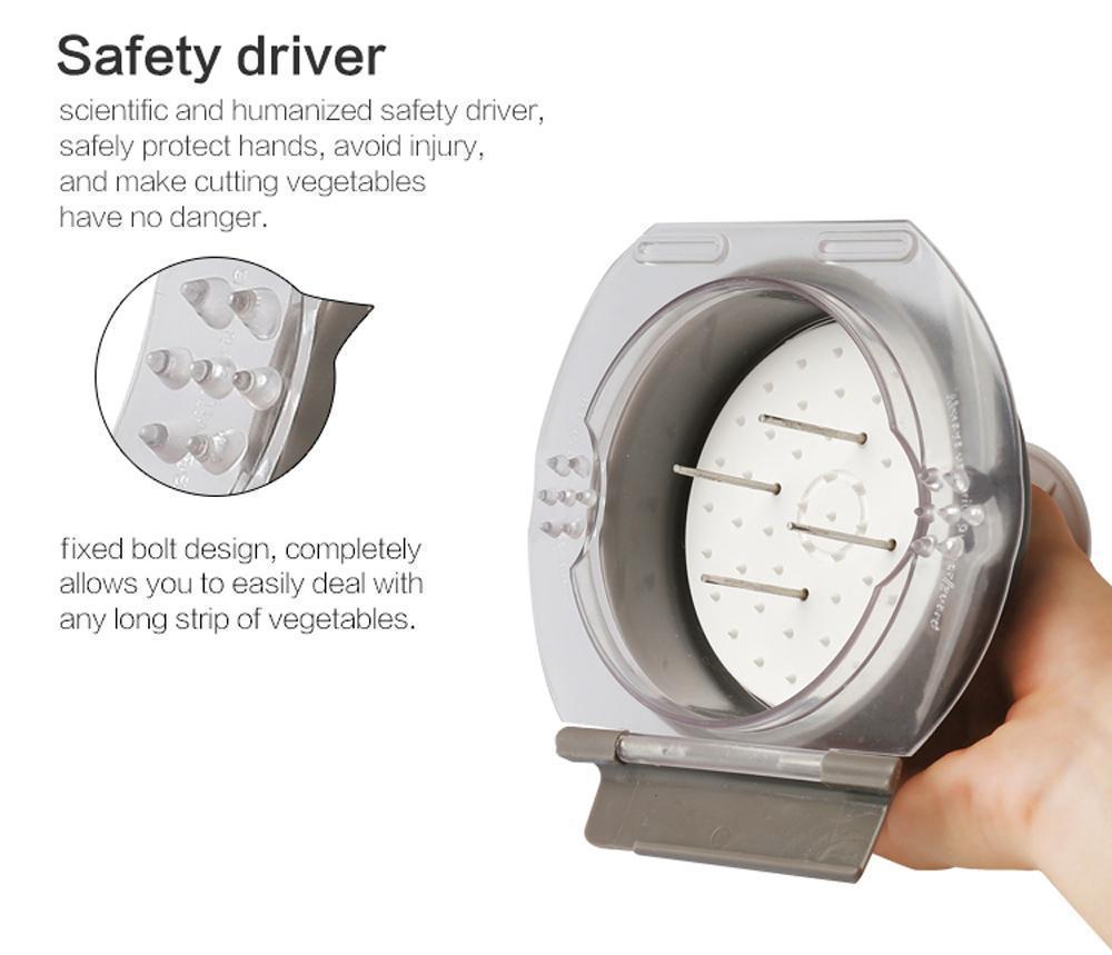 - Forebygg skader. Slipp bekymringene for å skade fingrene. Sikkerhetsbeskyttelsen sørger for at det eneste du skjærer er maten din.