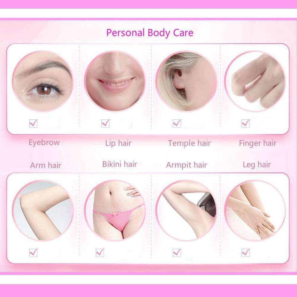- Utmerket bikini-trimmer og øyenbrynstrimmer, en elektrisk barberhøvel som gir pleie for kvinner