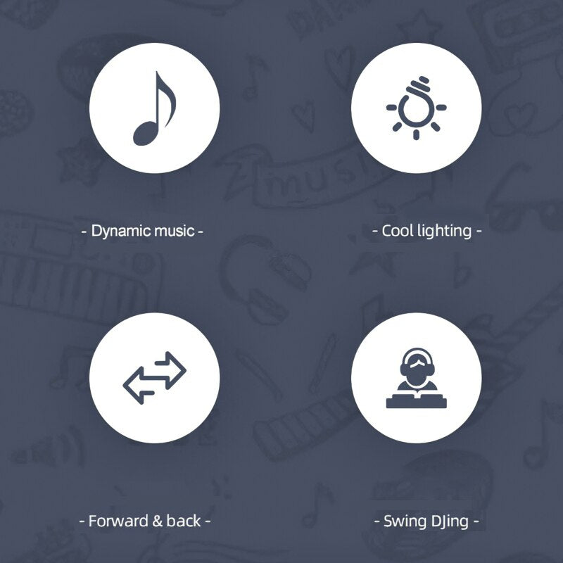 - Dancing Animal Dj Kids Toy er utstyrt med glidende hjul. Den vil vugge frem og tilbake med musikken og spille DJ frem og tilbake med hendene.