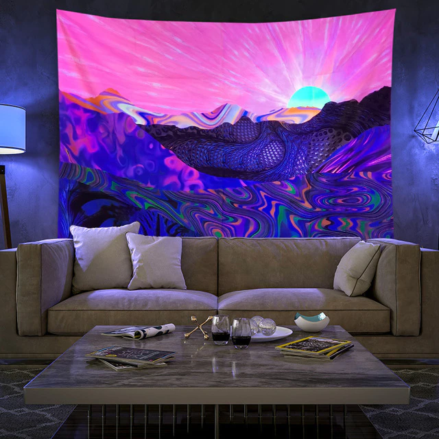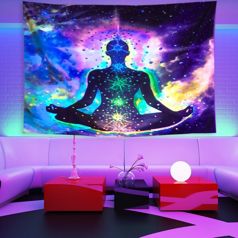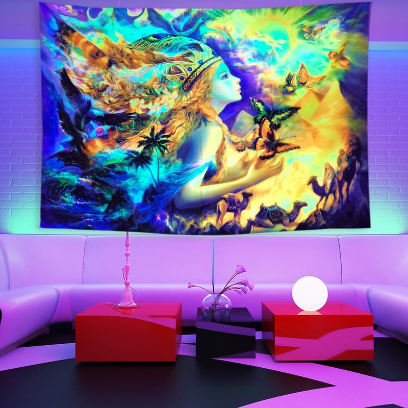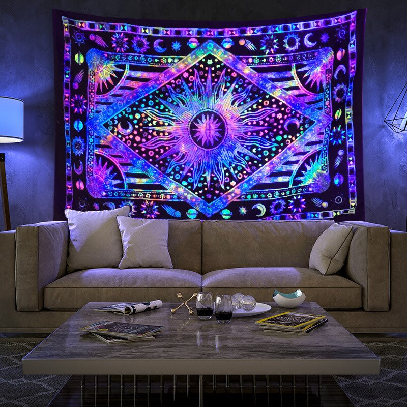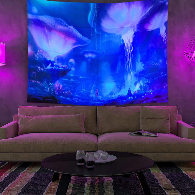 Denne veggteppet er som ingenting annet du har sett før. Det er laget av et spesielt stoff som lyser og glitrer i mørket, og skaper en vakker og etereal atmosfære i ethvert rom. Det beste? Fargene endres konstant, så du vil aldri bli lei av å se på dem. Enten du henger det på veggen eller bruker det som et sengeteppe, vil dette veggteppet helt sikkert tilføre litt magi til livet ditt.