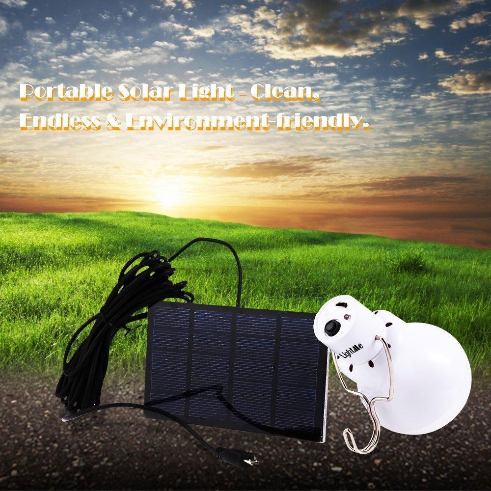 Denne solcelledrevne LED-pæren er helt avhengig av solenergi, som er en ren, uuttømmelig og miljøvennlig ressurs. I lysere timer, når solen skinner, omdanner solcellepanelet solenergien til elektrisk energi. Det fotovoltaiske panelet installeres i taket eller på et sted med godt sollys, kabelen trekkes inn i rommet, og kontakten plugges inn i ladeporten.