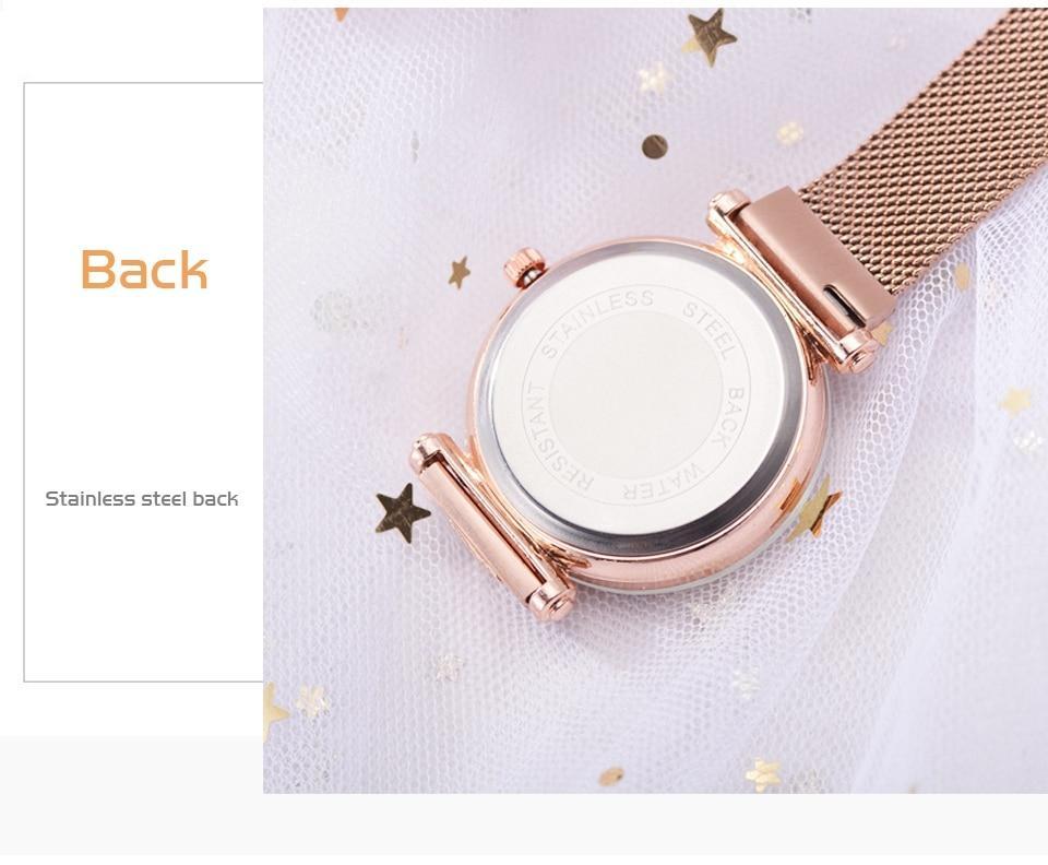 Norvo | Fasjonabel Unik Mesh Magnet Spenne Eksotisk Stjernespekket Diamant Designer Luksus Dameklokke
