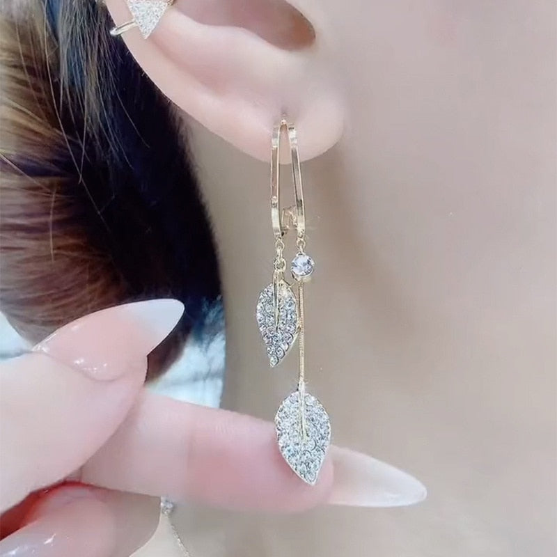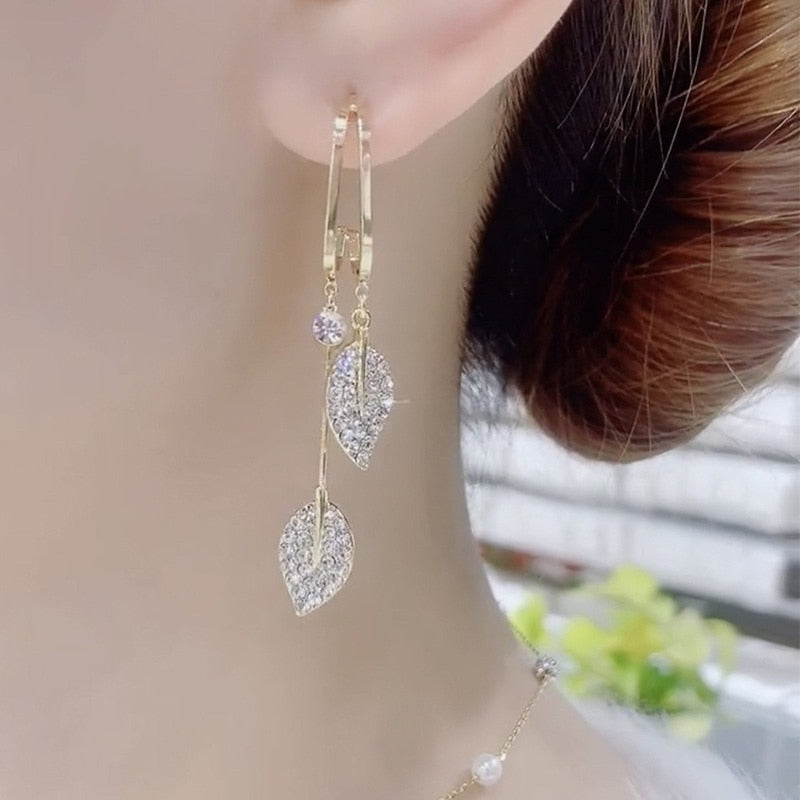 1x Nature Elegance Crystal Long Tassel Earrings