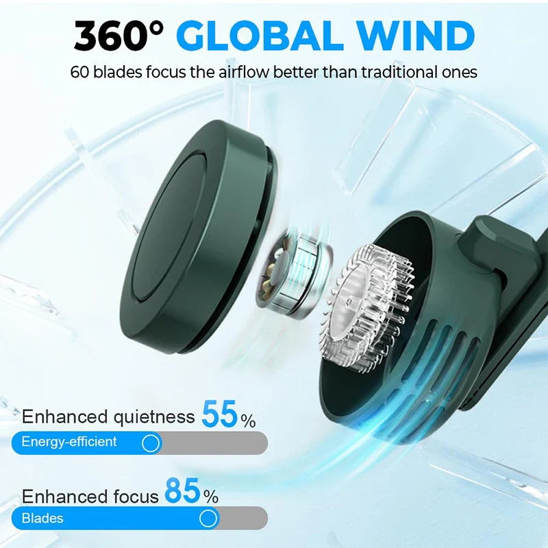 Norvo | BreezeClip Mini Vifte | USB Oppladbar & Stillegående | Uten Rotorblader | For å Klype på Skjorte, Belte eller Nakke