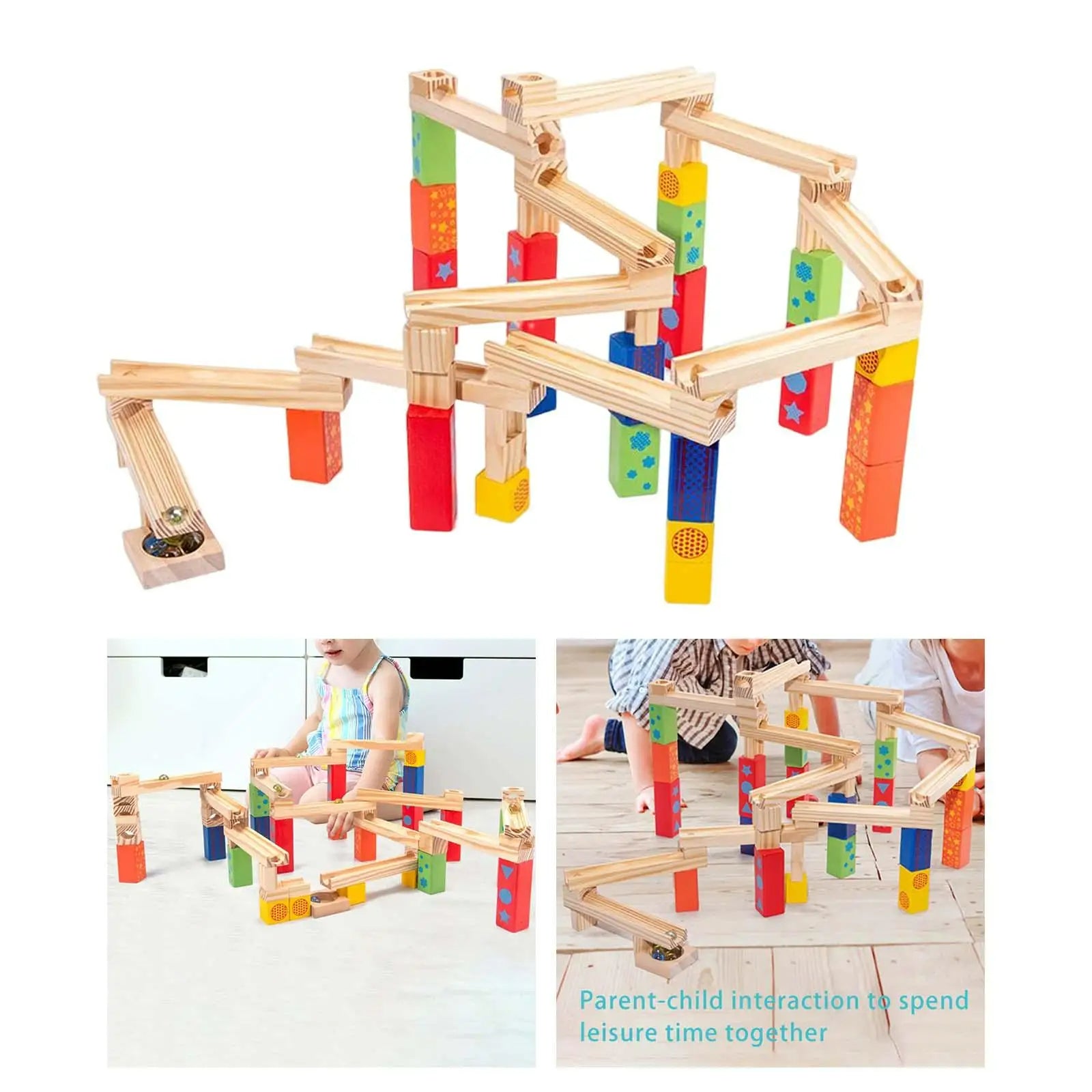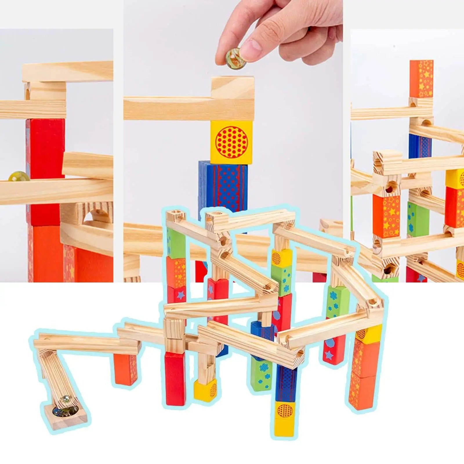 Dette treleketøyet gir mer enn bare underholdning. Det bidrar til å forbedre logikk, problemløsningsevner og hånd-øye koordinasjon. La barnet ditt utforske, bygge og lære mens de lager sin unike marmorbane med 53 fargerike klosser.