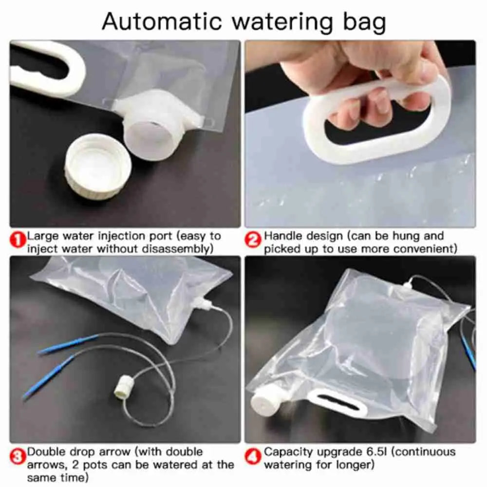 Norvo | Floriva Plante Vanning Bag | Opptil 30 Dager Automatisk Dryppvanning | Med Ventil & 1 m Slange | 2–6.5 L