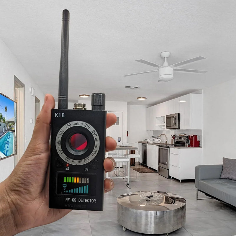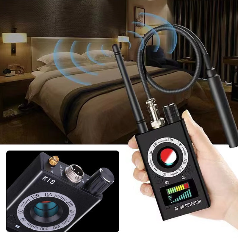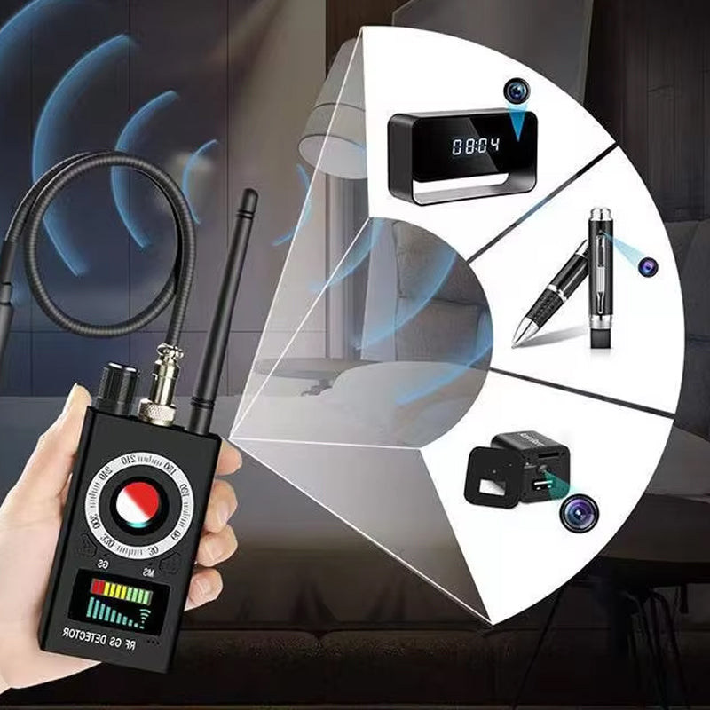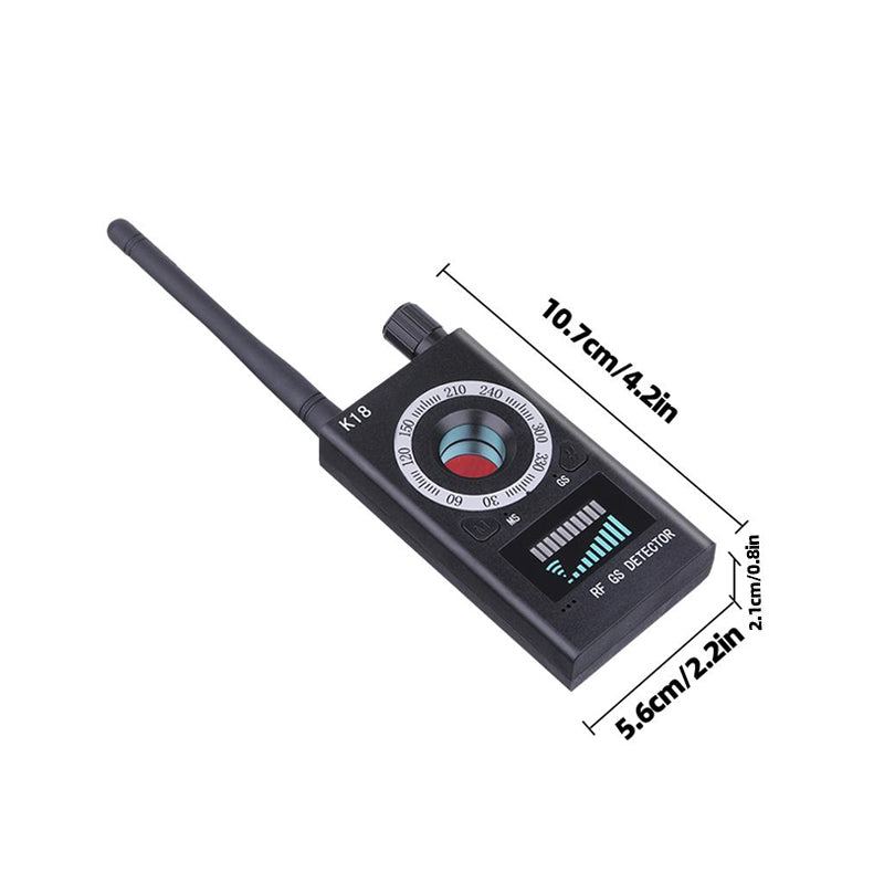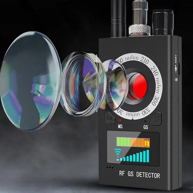Deteksjon av Skjulte Kameraer: For skjulte kameraer benytter detektoren infrarød laser for visuell inspeksjon av objektivet. Bare hold enheten nær det mistenkte kameraet, og den vil hjelpe deg med å avdekke pinhole-kameraer, uten avhengighet av lydalarmer.