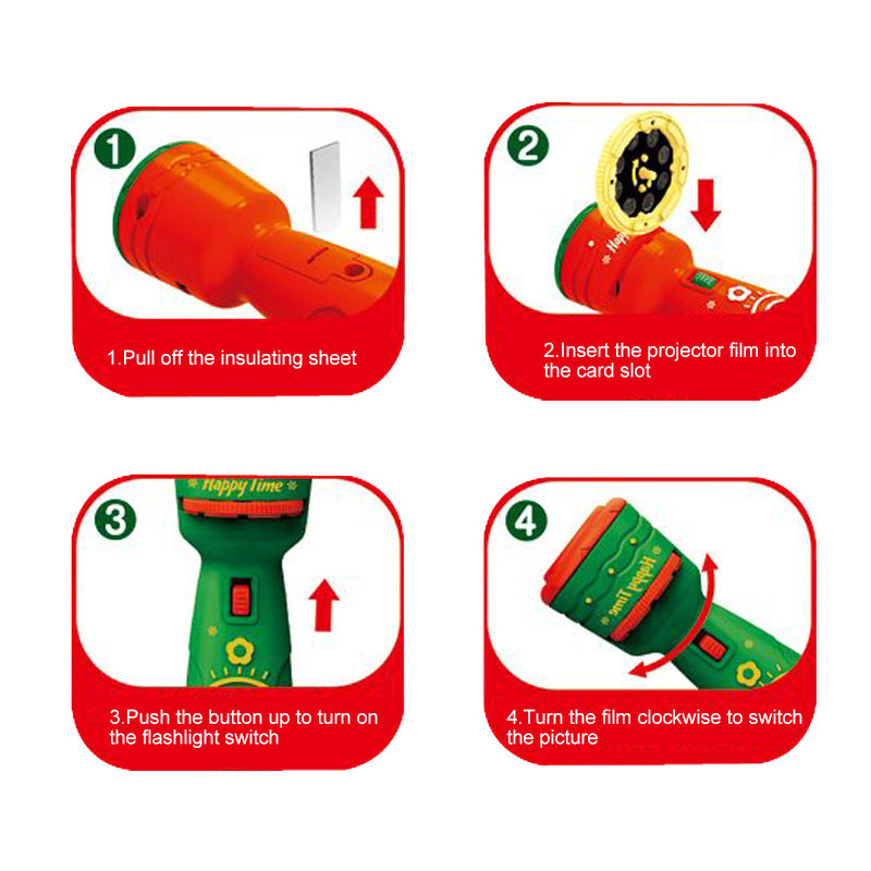 【High Quality & Multifunction】 Made of high-quality ABS environmentally friendly, non-toxic materials, and the smooth edges will not hurt children's little hands. (AA batteries are not included) It is very energy efficient. There is an on/off button on the flashlight, which can be turned off when not in use. Can not only be used as a projector, but also as a flashlight, both indoors and outdoors. Is a children's favorite Christmas/holiday/birthday gift.