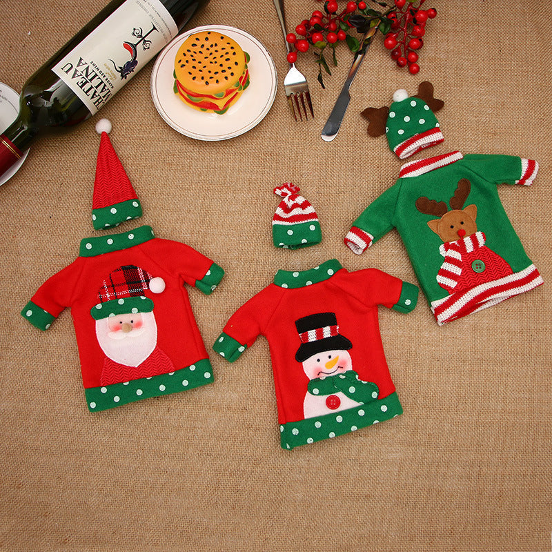 God juleborddekoration: Juledekorasjon til bordet gir en veldig søt ferieutstilling for vinflasker, fyller middagen din med juleånd, gjør din spiseprosess veldig festlig, la deg nyte julekvelden.