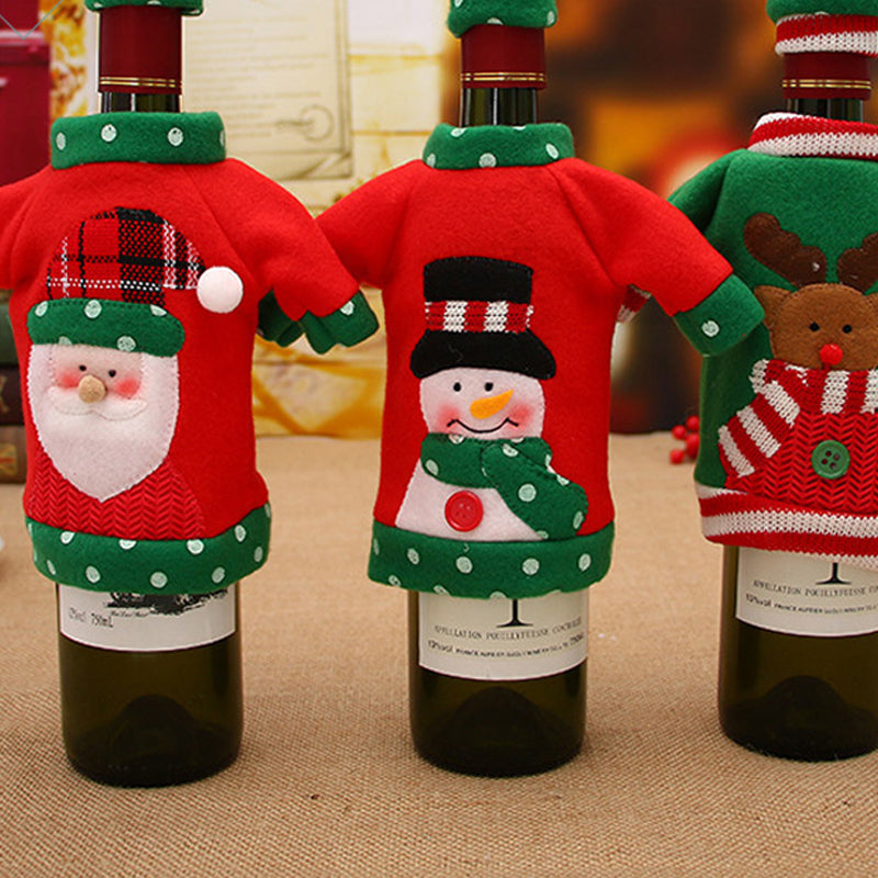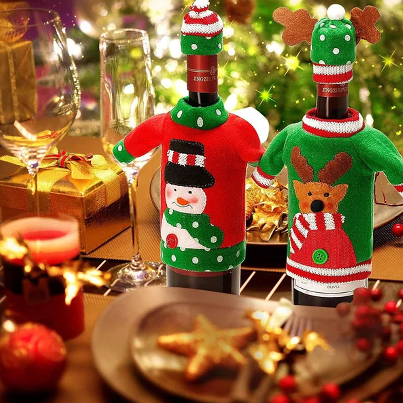 Adorabelt design: disse vinflaske-genserne er designet med klassiske juleelementer som snømann, julenisse og reinsdyr, som får deg til å smile, og med deres morsomme utseende, er de gode til å bringe julestemning og glede til julaften.