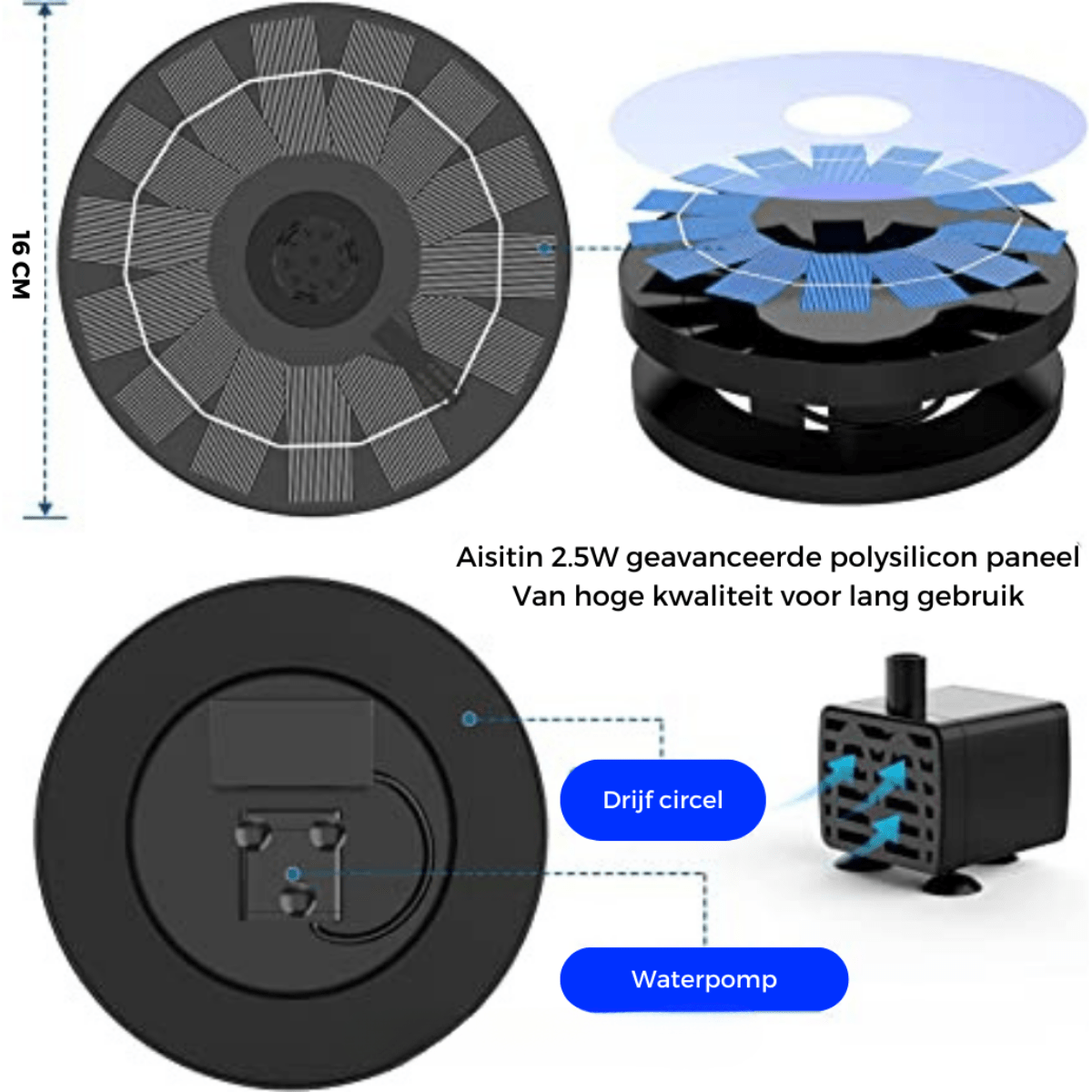 - Klar til umiddelbar bruk: Bare plasser den i solen - fontenen starter automatisk takket være det integrerte solcellepanelet.