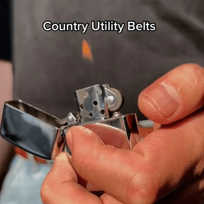 En stilig måte å holde buksene oppe og skjule din favoritt ZP-stil lighter foran på beltespennen. Lighteren er ikke synlig under bruk.