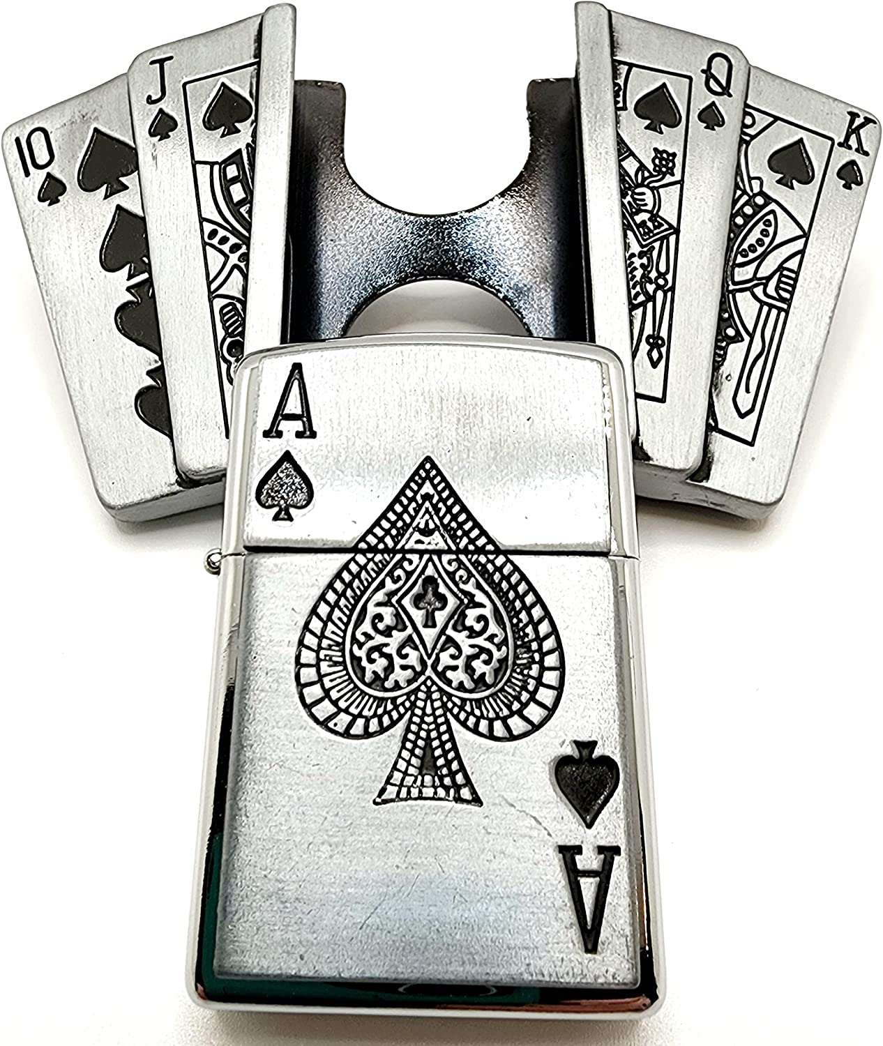 Se dette høykvalitets Poker-Royal-Flush-Nostalgia beltespennen ZP-holderen, som har sin egen lommelykt-stil Ace of Spades lighter.
