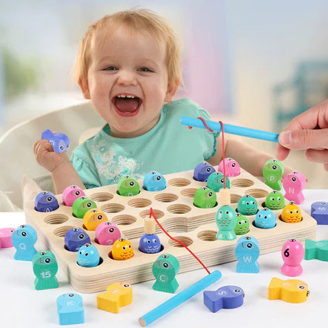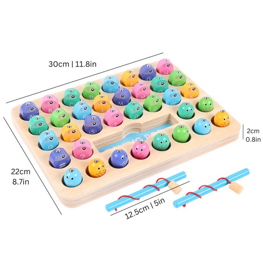 Dette magnetiske fiskespillet tilbyr en kreativ måte for barn å bli kjent med alfabetet. Det styrker både finmotorikk og hånd-øye-koordinasjon, samtidig som det gjør læring til en morsom og engasjerende aktivitet.