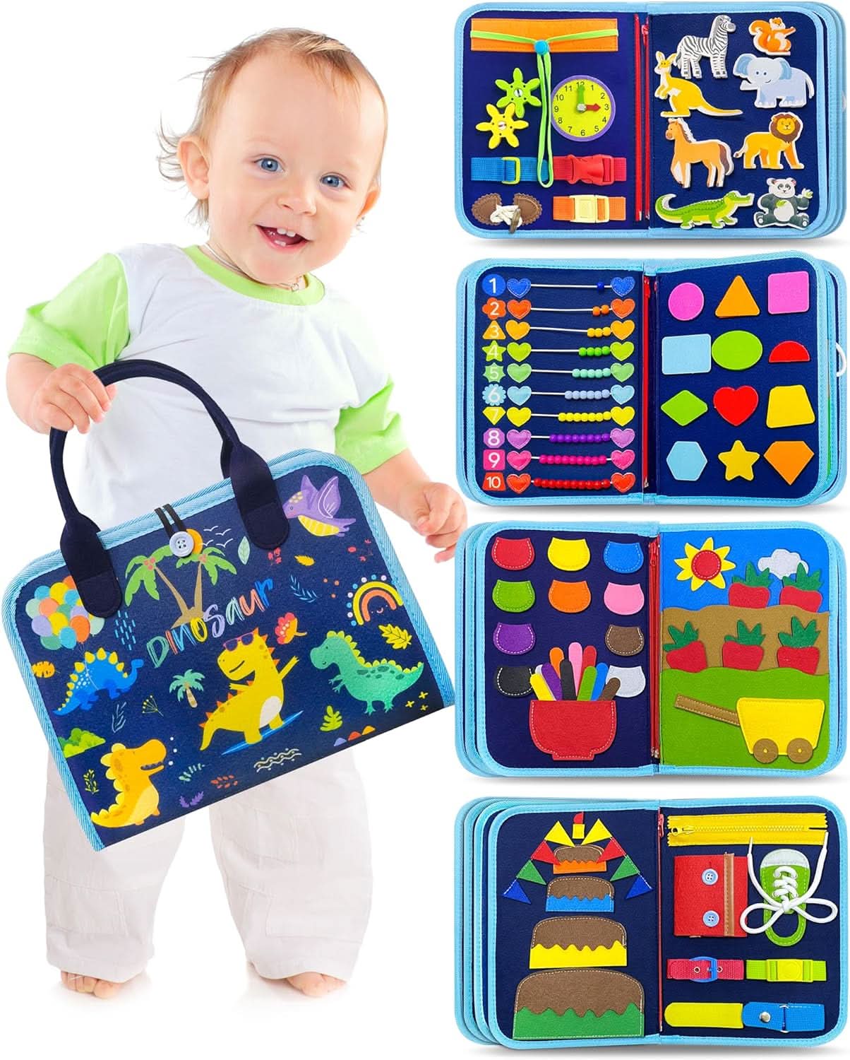 - Diverse læringsmuligheter: Glidelåser, skolisser, knapper og andre elementer oppmuntrer til grep, åpning og lukking - perfekt for å fremme hånd-øye-koordinasjon.