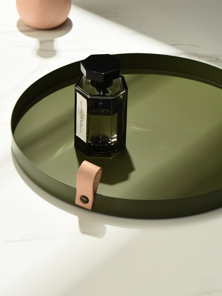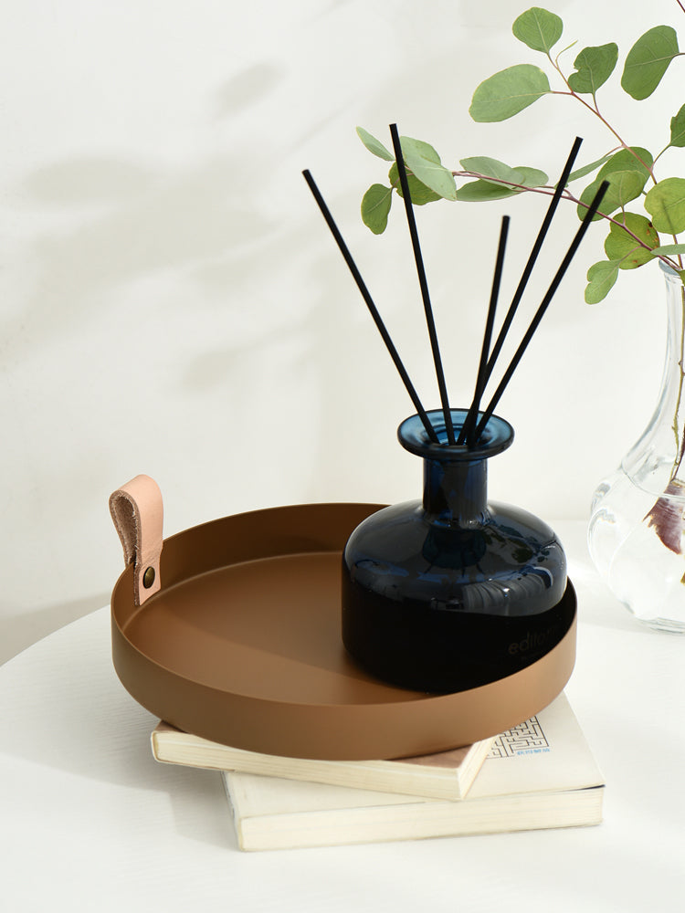 Norvo | Nordisk Stil Læderhåndtag Smidesjern Rundt Fat Plate Farge Oppbevaringsplate Vannglassplate Hjemmedekorasjon