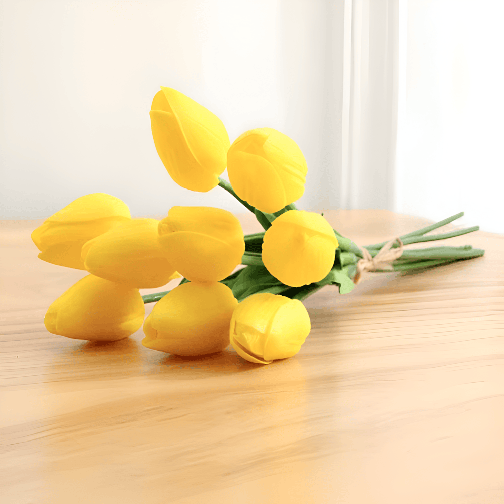 Dette settet med 6 realistiske kunstige tulipanbuketter tilfører farge og eleganse til ethvert rom, uten vann eller omsorg. Den høykvalitets finishen og livaktige detaljer gjør dem nesten umulige å skille fra ekte tulipaner. Perfekt for stuer, festbord, hagefester, eller som varig sesongdekorasjon.