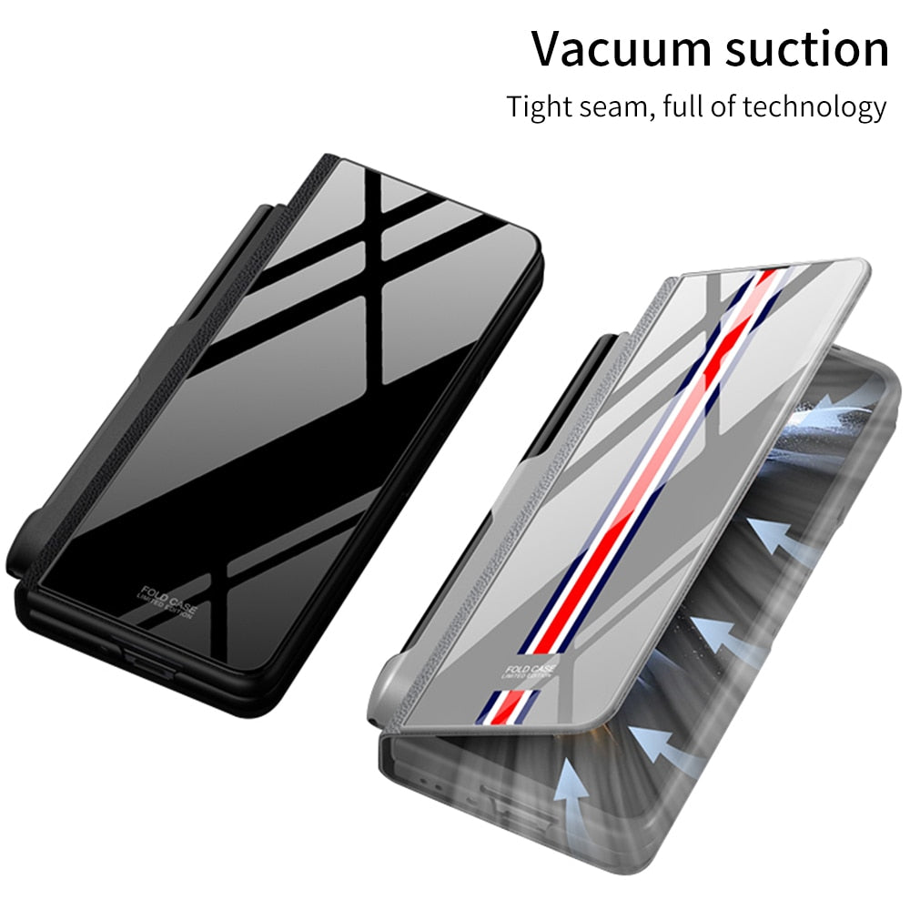 Norvo | Støtbestandig Rustningssak Glassdeksler Stativ Sett Inn Kort Lærsak for Samsung Galaxy Z Fold 5/4