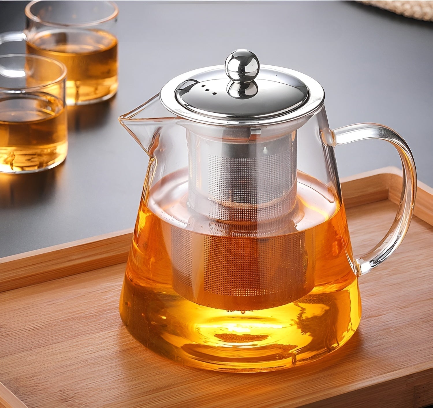 Norvo | Teekanne Claritéa | Borosilicate glass | Med rustfritt stålfilter og trelokk | Varmeresistent og oppvaskmaskin trygg