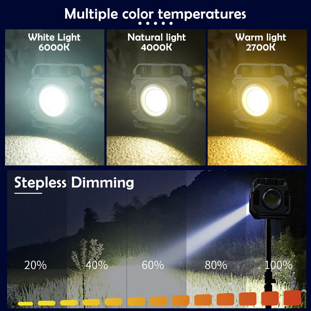 📌 Kraftfull & allsidig – 1500 lumen COB flomlys og 600 lumen TG3 spotlight gir optimal belysning, både på nært hold og på avstand.