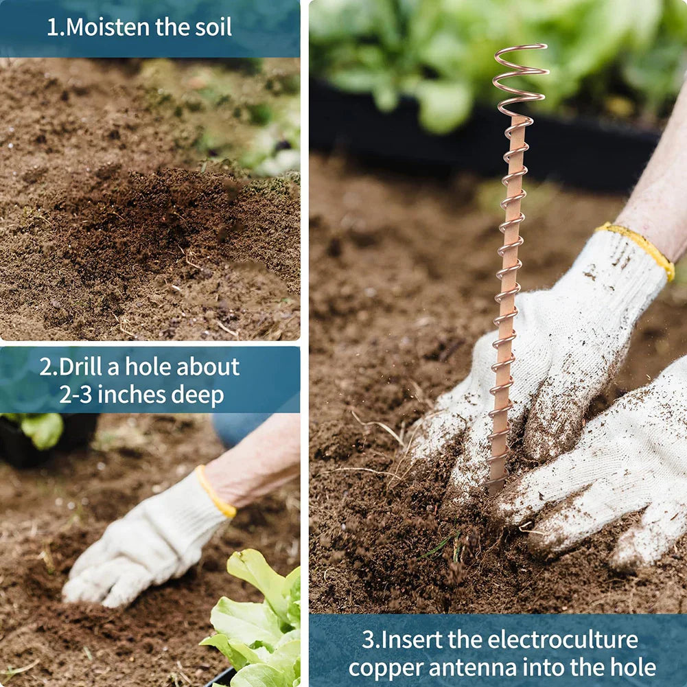 VerdoraFlux Elektro-Kultur Antenner gjeninnfører den tidløse kunnskapen om naturlig plante-stimulering til hagen din! Ved å bruke førsteklasses kobber og et spiraldesign, fanger disse plantebåndene atmosfærisk energi for å betydelig forbedre veksten til plantene dine – helt uten kjemiske stoffer eller kunstige gjødselmidler.