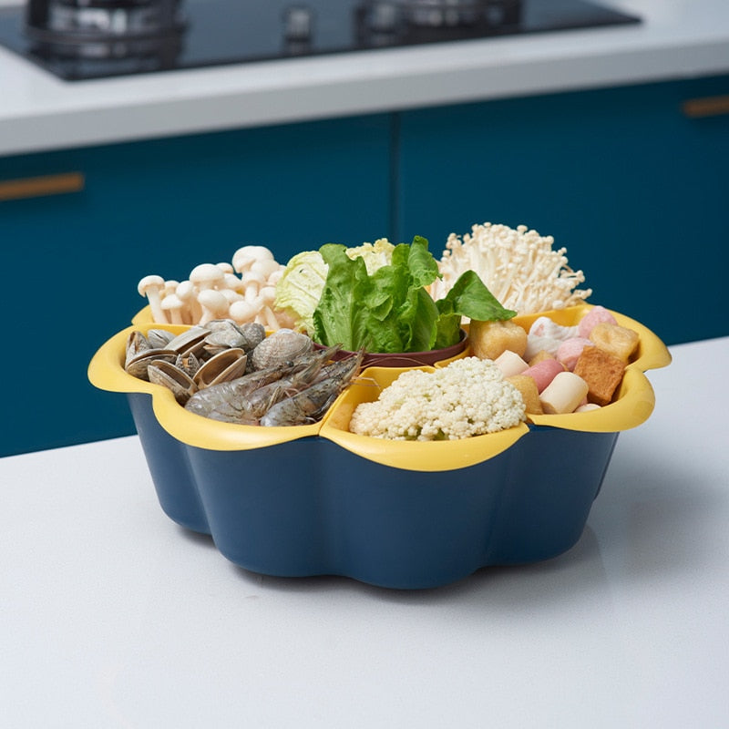 Vi presenterer den roterbare dreneringskurven: det perfekte kjøkkenutstyret for travle kokker! Vask og skyll frukt og grønnsaker, og sil pasta eller poteter samtidig som du holder benkeplaten fri for vannrot. Med sin 360-graders svingbevegelse kan du flytte den bort når den ikke er i bruk for å maksimere benkeplass.